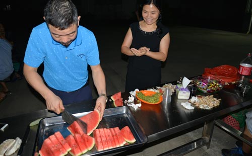 接著壽星們說出了自己的人生目標和目前狀況,表示自己將繼續埋頭苦干,拼命硬干,先是要對得起自己,再者要報效公司。下一個環節是表演節目,壽星們更是破桑大唱,似乎喊出了自己此時無盡激動的心情,歌聲欲振旁林之樾,辛總也跟著傾情演唱,意氣高昂,蕩氣回腸,為生日晚會聲威助陣,把生日會的氣氛推向了高潮。