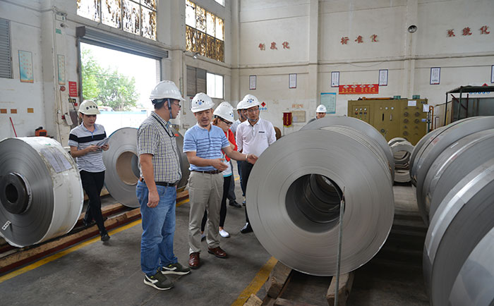 2016年11月8日,富士康科技集團采購部詹部長一行來我廠進行參觀指導工作。詳細了解了我們公司的生產現狀和未來規劃,辛總和相關的技術人員陪同詹部長等人到生產車間了解我們的鋼帶原材,參觀了我們的4輥軋機,20輥軋機、拉矯機的生產過程。
